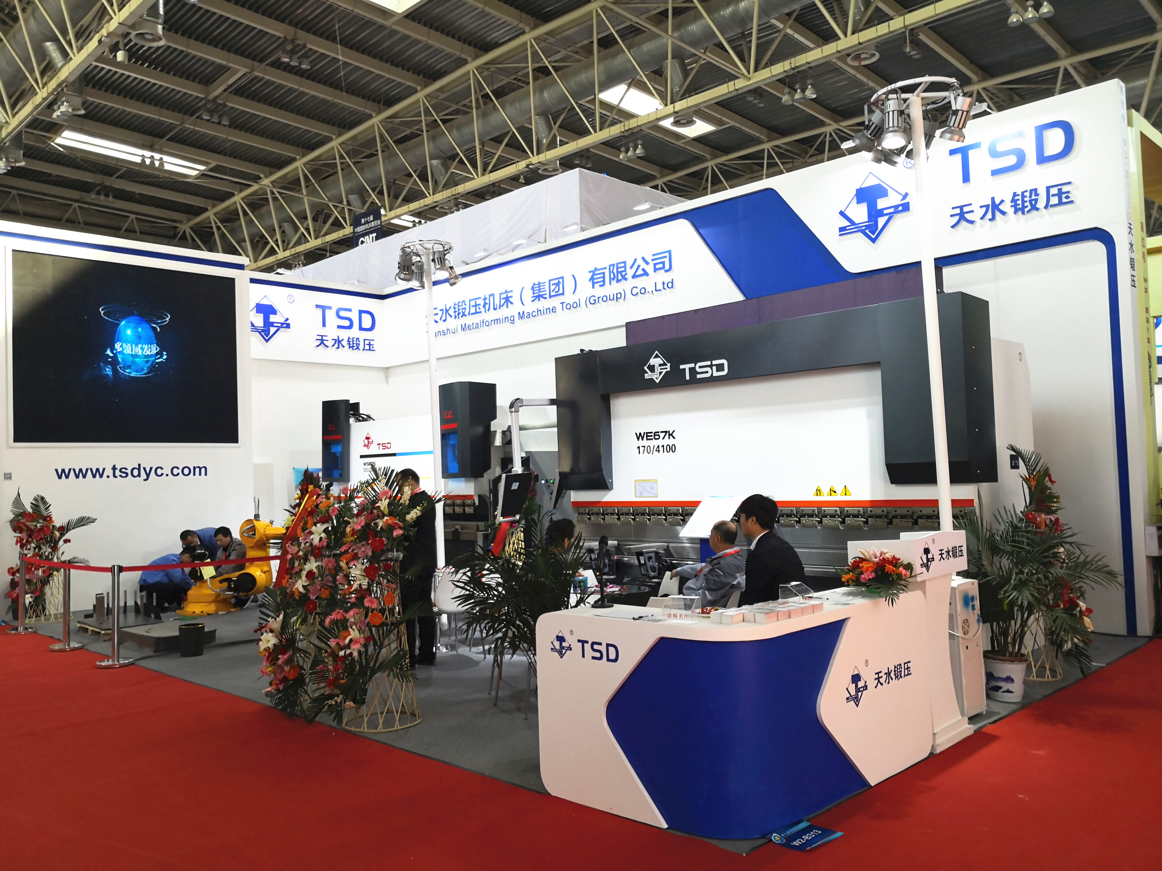 يعرض TSD مجموعة واحدة من مكابح الضغط WE67K-170/4100 CNC ومجموعة واحدة من مكابح الضغط CNC المضخة المؤازرة WS67K-100/3200 مع روبوت في كشك رقم W2-B313.